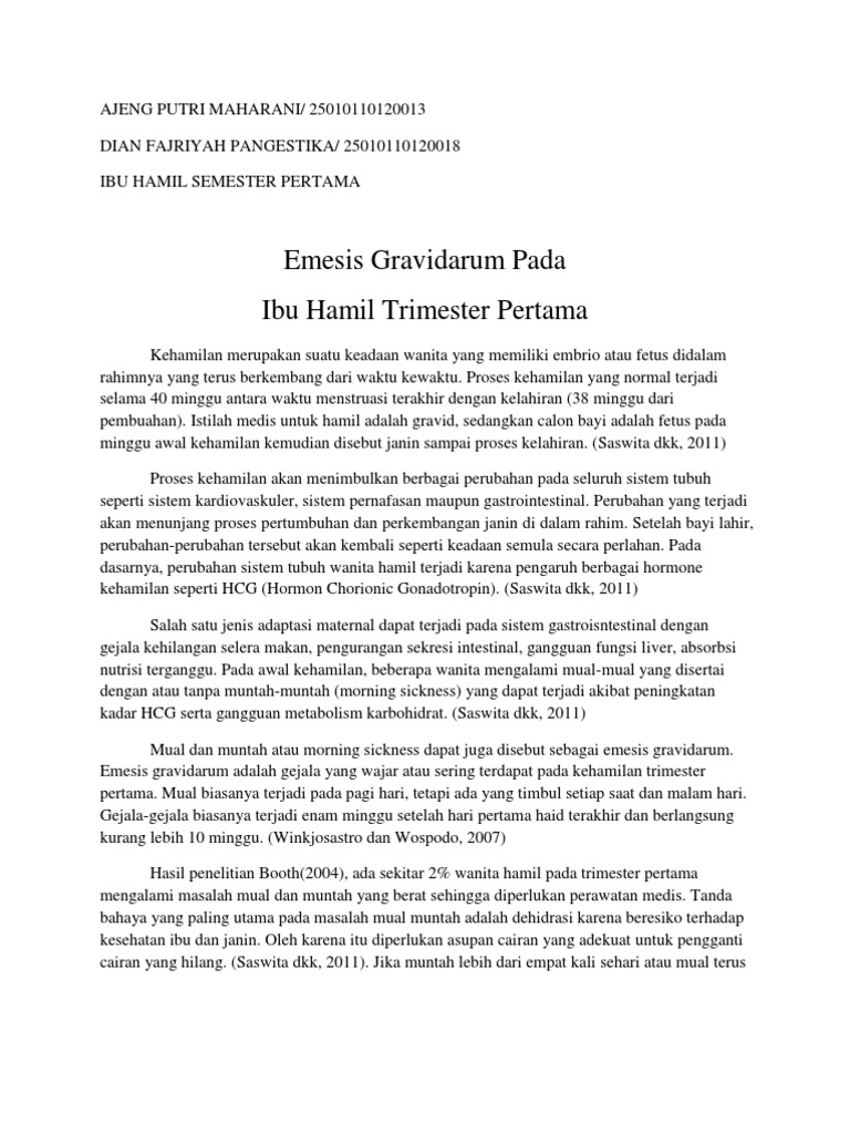 Emesis Gravidarum Pada Ibu Hamil Trimester 1