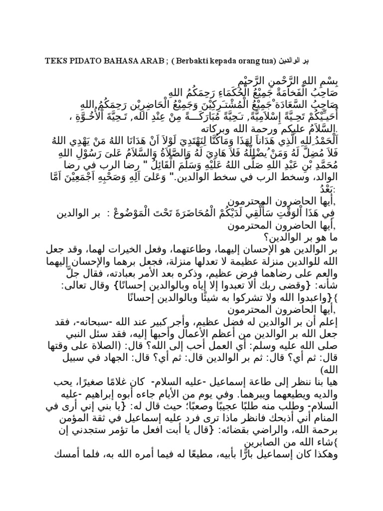 Teks Pidato Bahasa Arab Tentang Berbakti Kpd Orang Tua | Peatix