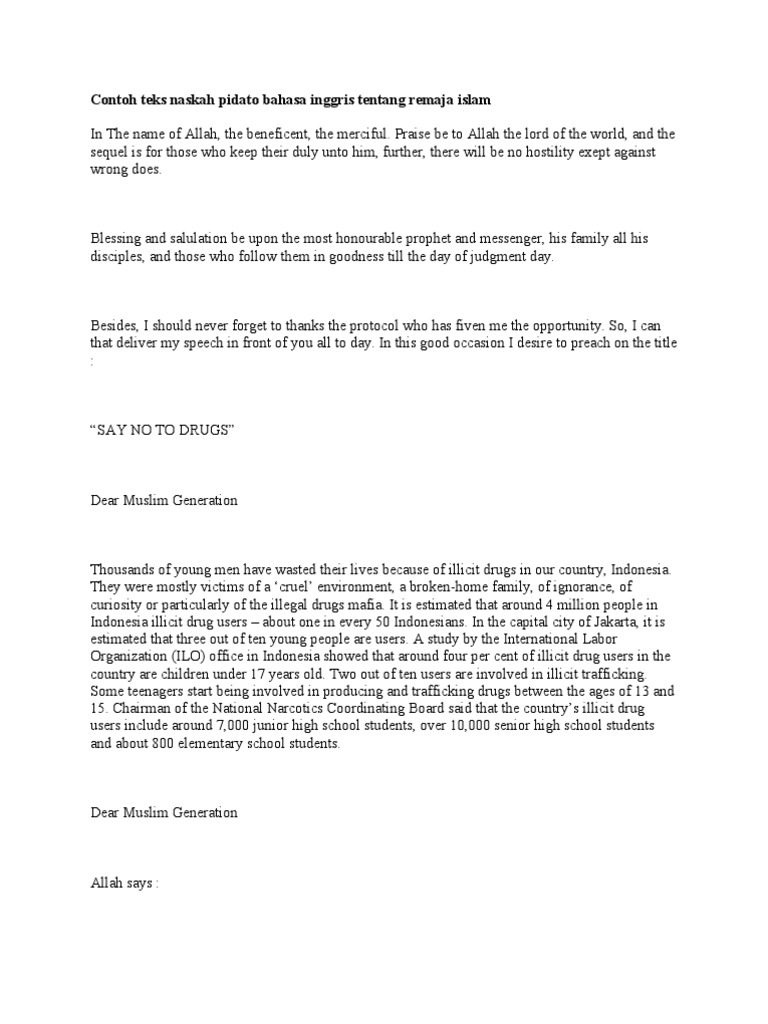 Contoh Teks Naskah Pidato Bahasa Inggris Tentang Remaja Islam | Substance Dependence | Illegal Drug Trade