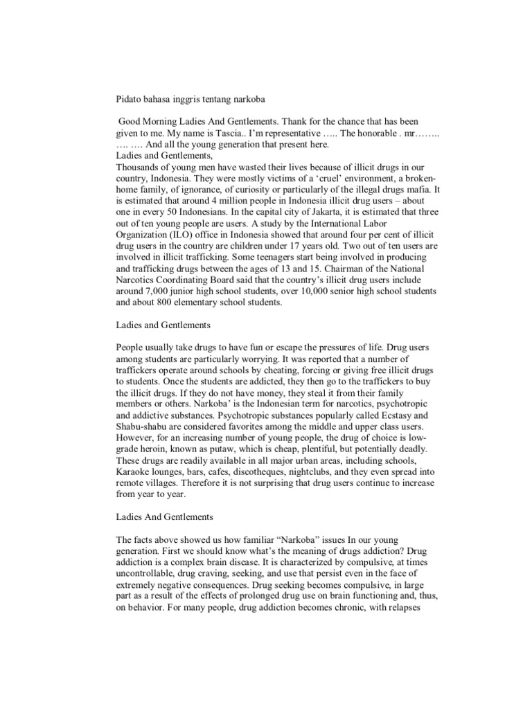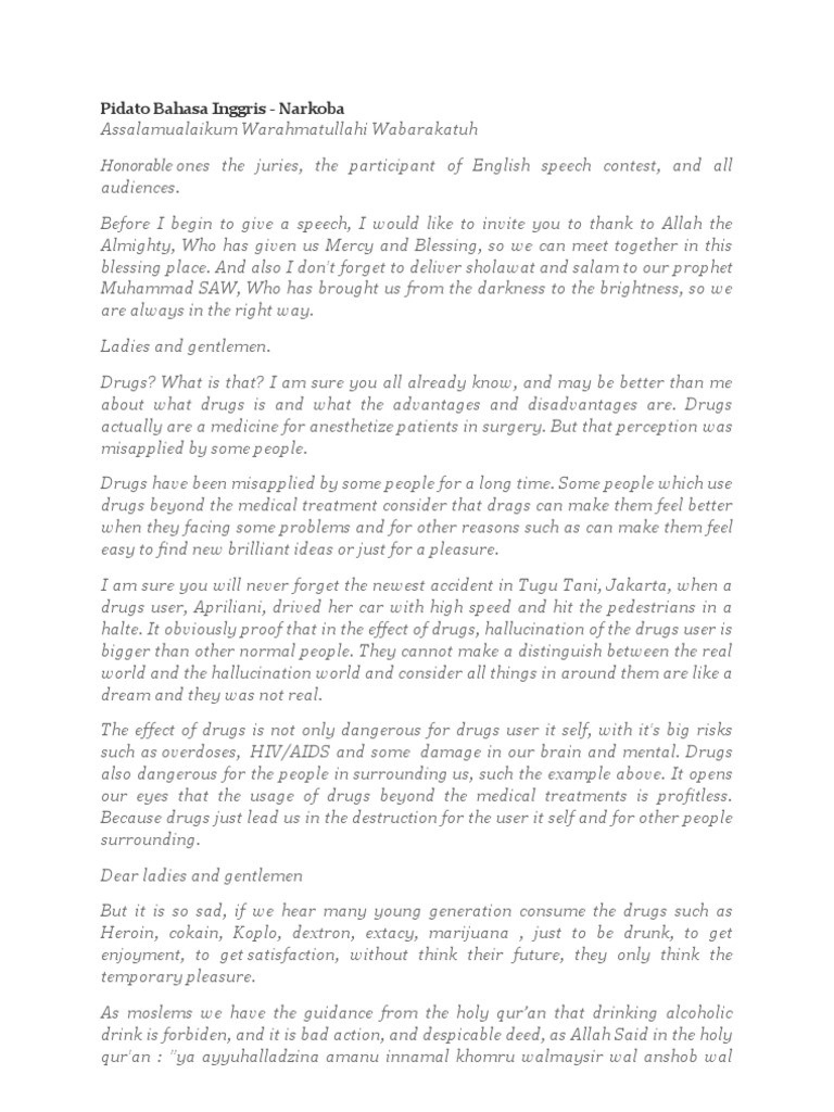DOC) Contoh pidato singkat Bahasa Inggris tentang Narkoba (spech English About Drugs) | HIDAYATTULLAH AL-YAKUB - Academia.edu