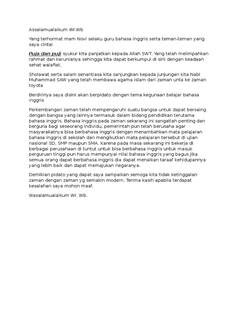 Teks contoh pidato bahasa inggris dan Artinya | putri meirani31 - Academia.edu