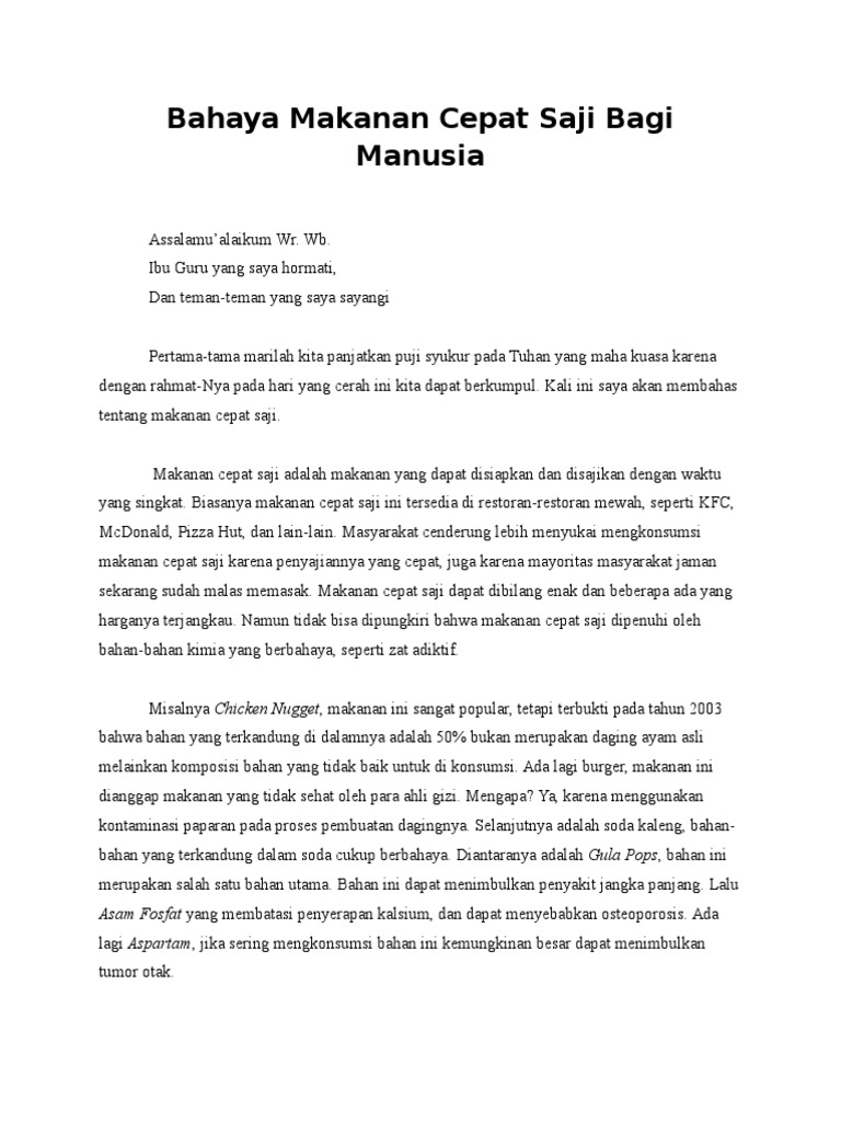 Pidato Bahaya Makanan Cepat Saji