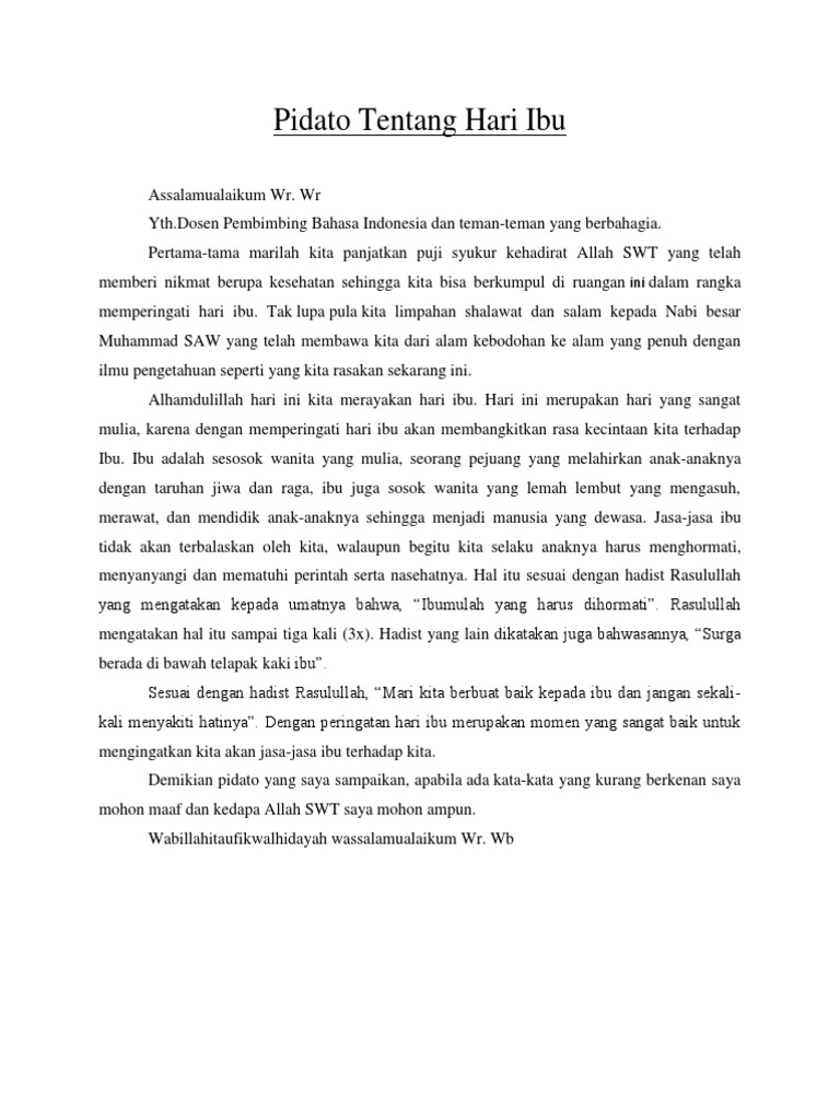 DOC) Contoh Pidato Tentang Ibu Islami | Nina Rosalina - Academia.edu