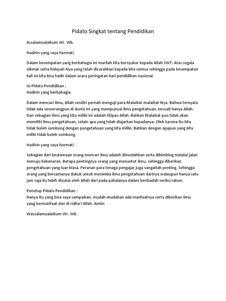 DOC) Contoh Pidato Singkat Pendidikan | indah mokobombang …