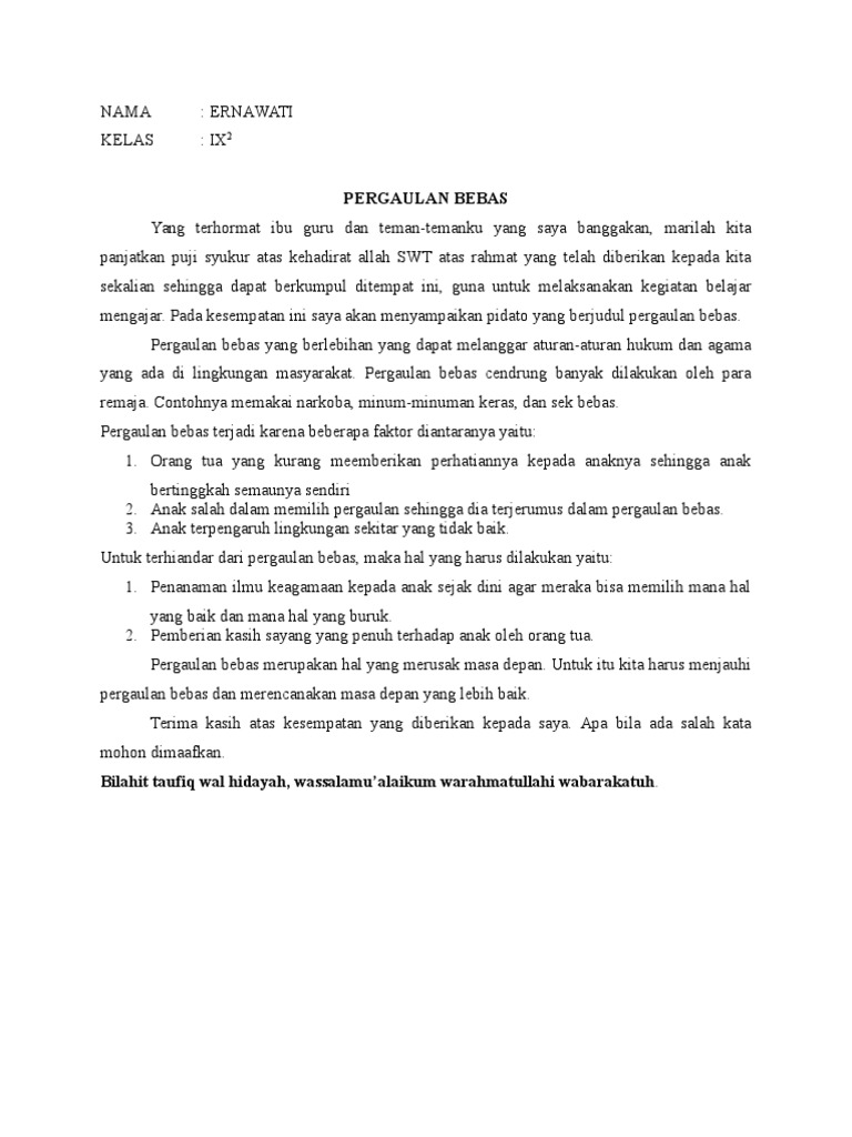 DOC) Teks Ceramah Agama Islam Tentang Pergaulan Bebas | bedjo …