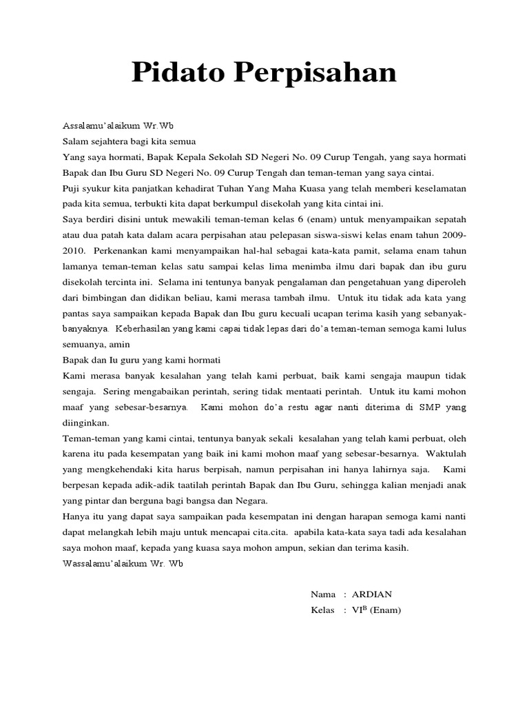 DOC) Contoh Naskah Pidato Perpisahan Sekolah | Thama Firdaus - Academia.edu