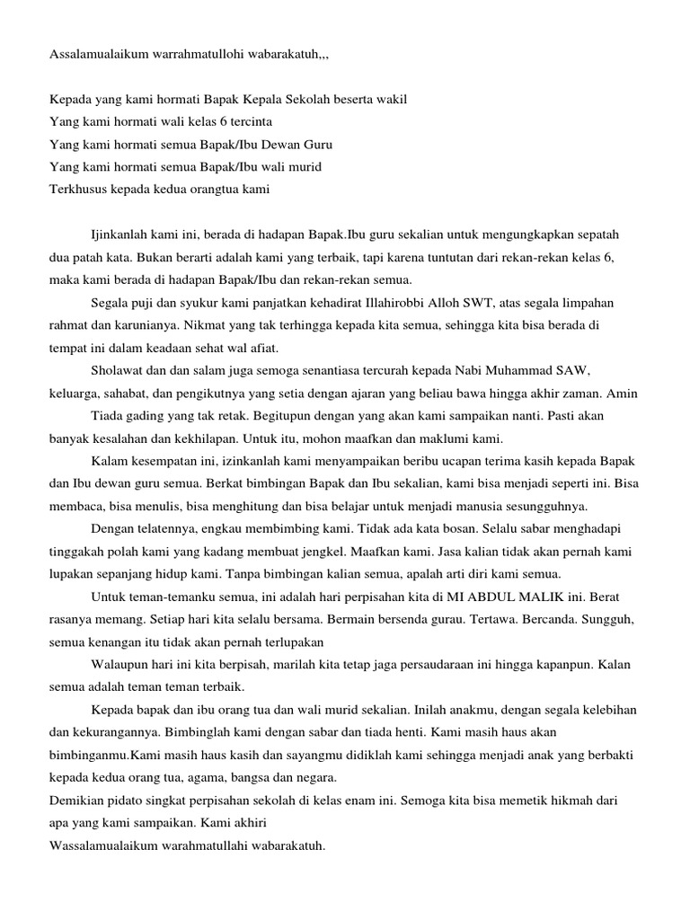 PDF) CONTOH PIDATO 51 Pidato Perpisahan SD | Farid Ramlan …