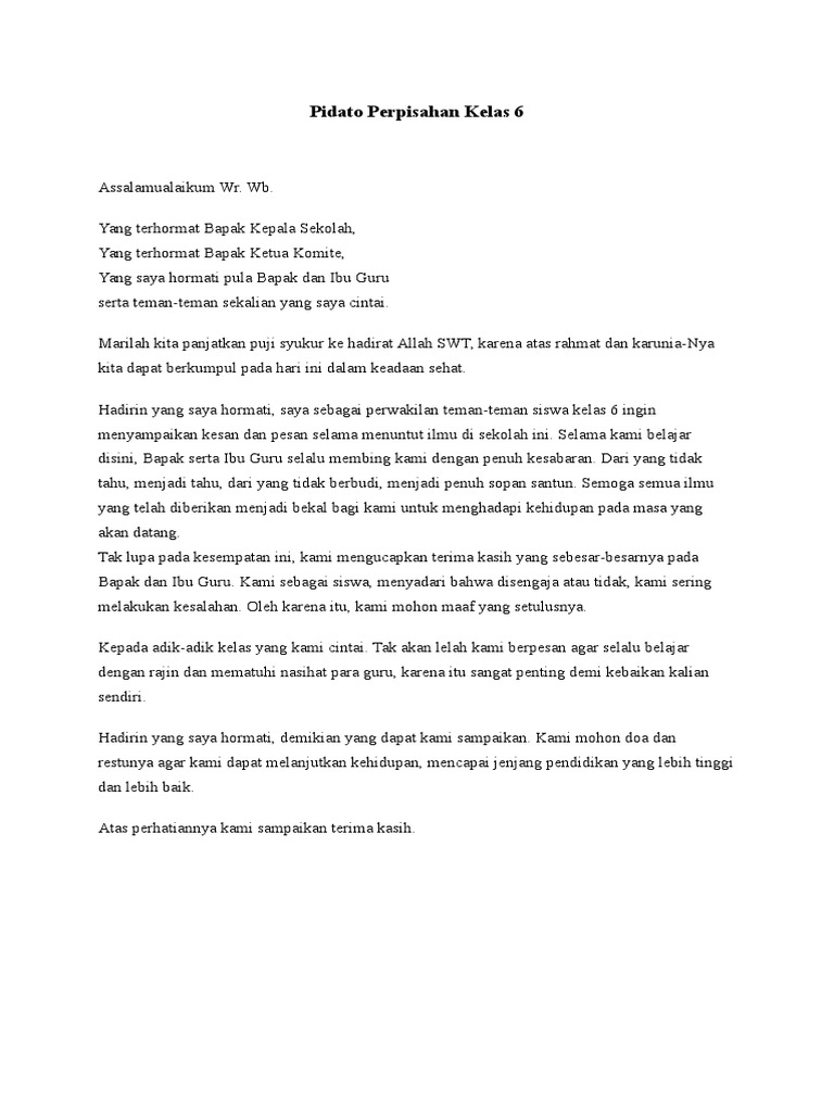 DOC) Pidato Perpisahan Kelas 6 | Charles Pardede - Academia.edu