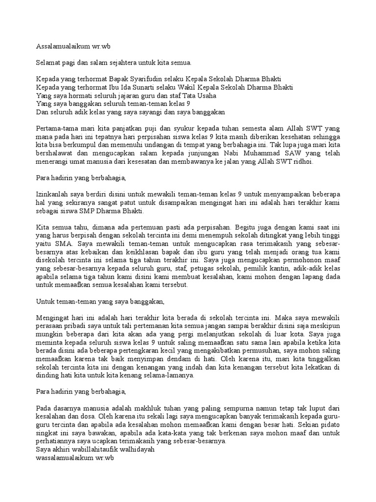 PDF) CONTOH PIDATO 51 Pidato Perpisahan SD | Farid Ramlan - Academia.edu