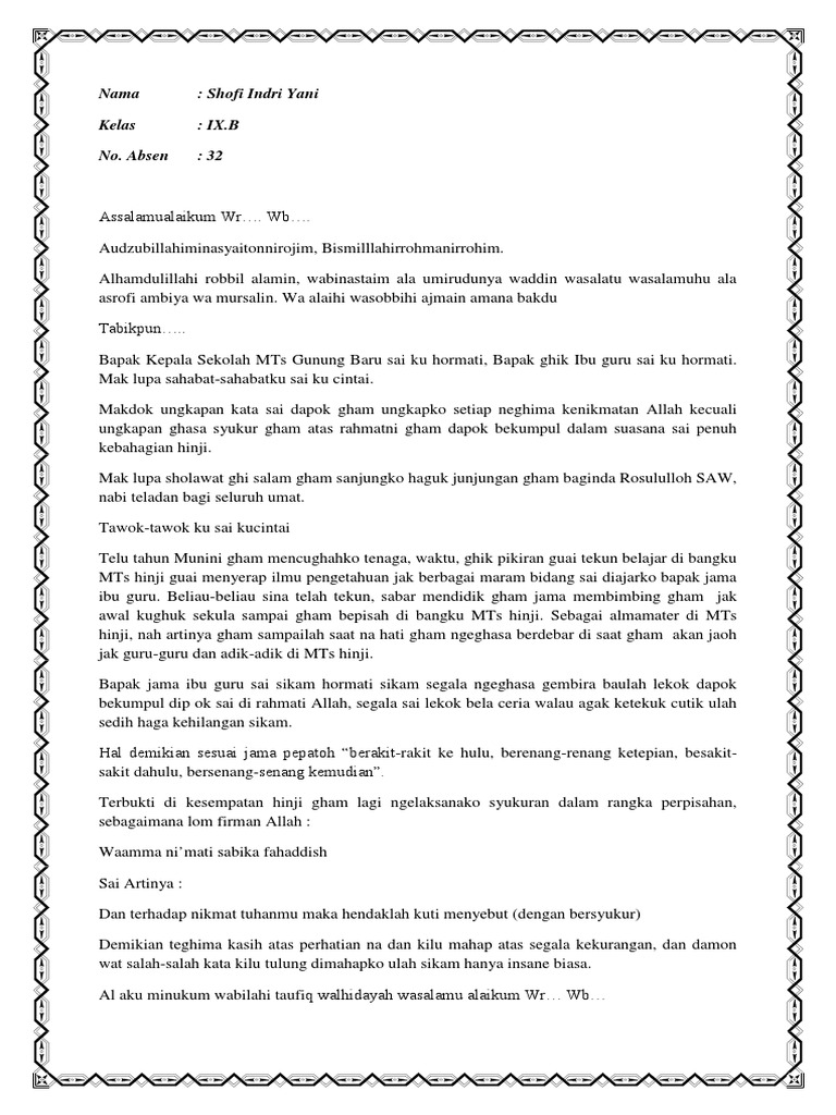 PDF) CONTOH PIDATO 51 Pidato Perpisahan SD | Farid Ramlan - Academia.edu