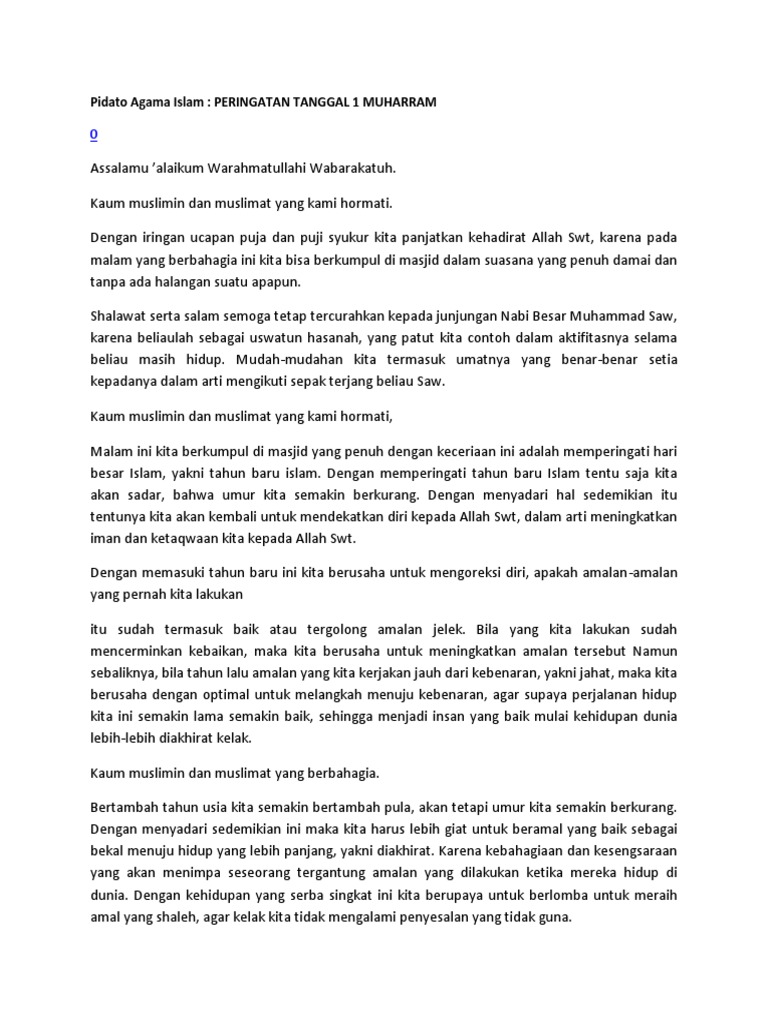 Contoh Pidato Memperingati 1 Muharam - Pidato | speech