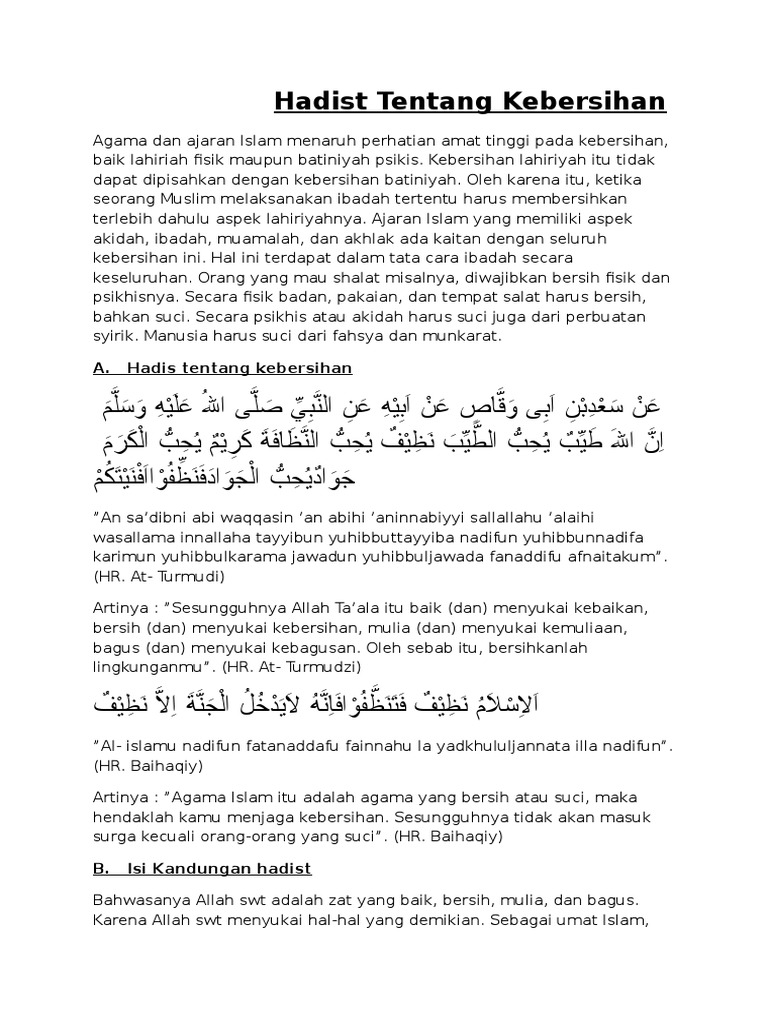 Hadis Tentang Kebersihan Dan Artinya - Nusagates