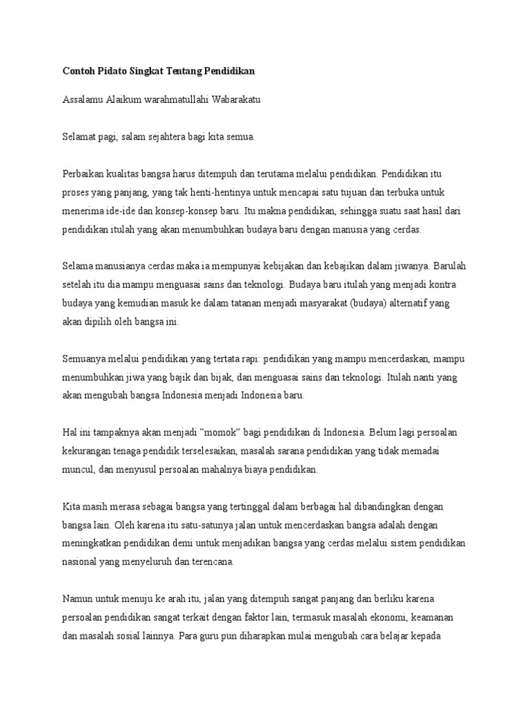 Contoh Pidato Singkat Tentang Pendidikan Di Indonesia