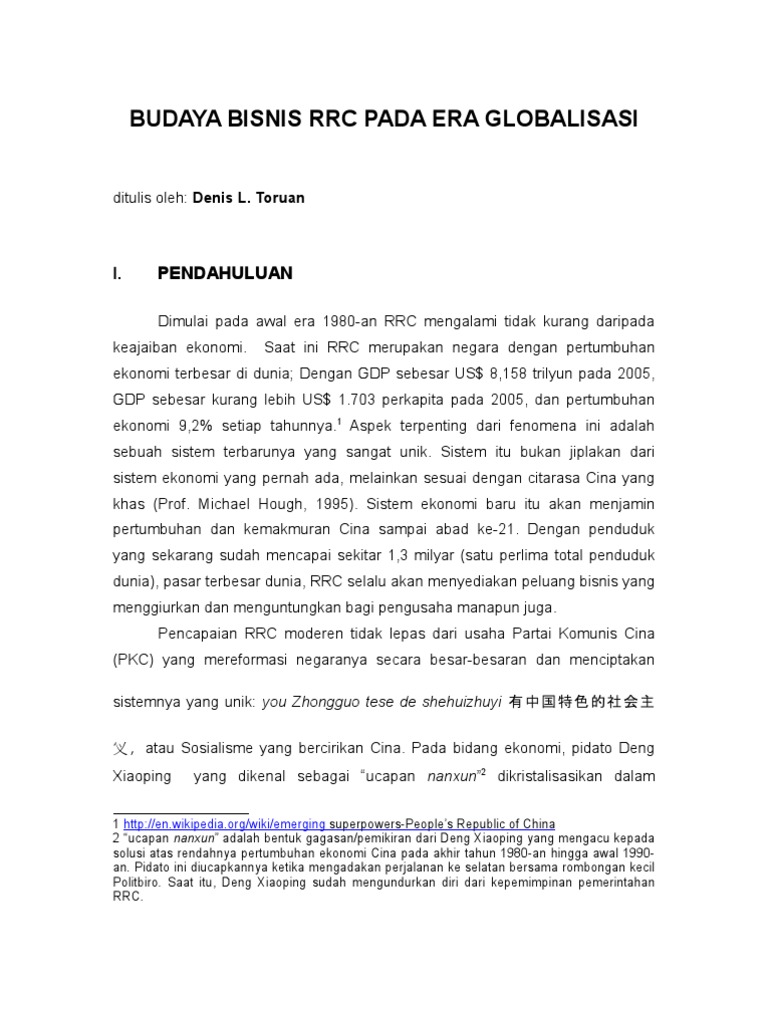 Budaya Bisnis China pada Era Globalisasi
