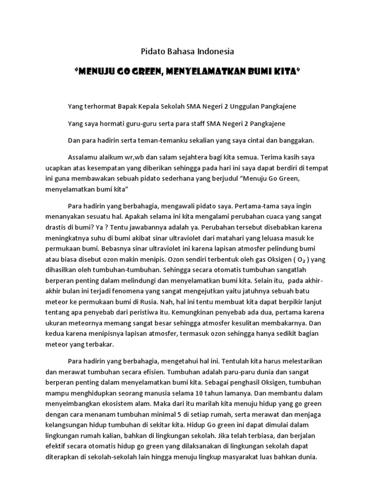 DOC) Pidato Tema Lingkungan “Generasi Muda Peduli Lingkungan …