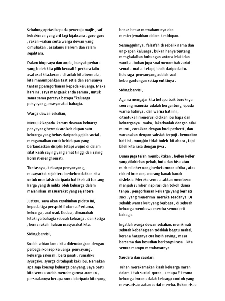 Pidato Keluarga Penyayang Masyarakat Bahagia