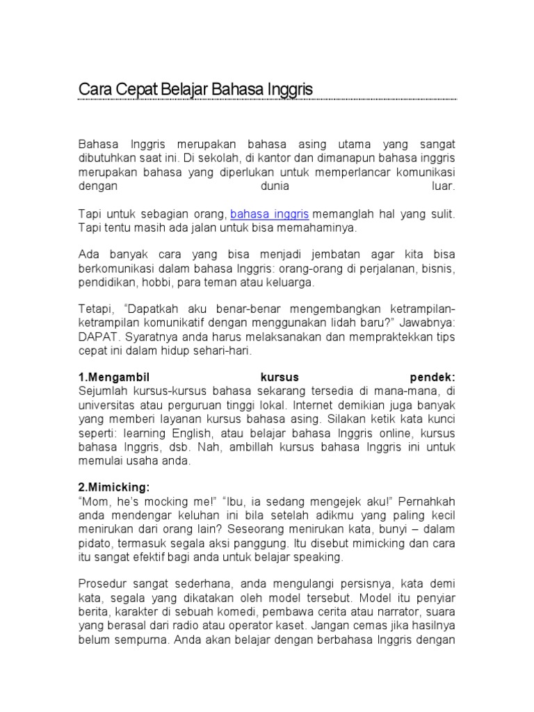 Cara Cepat Belajar Bahasa Inggris