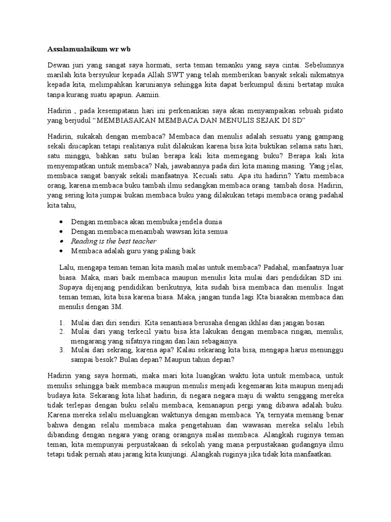Teks Pidato Persuasif Belajar Membaca | Mikirbae.com