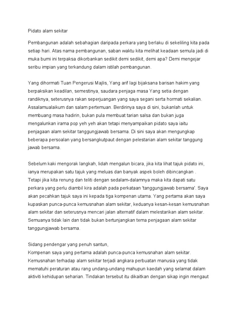 DOC) Pidato Tentang Lingkungan | Fajar Xarjaf - Academia.edu