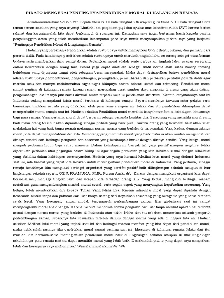 DOC) Naskah Teks Pidato Pentingnya Pendidikan Moral | CBC Syarif - Academia.edu
