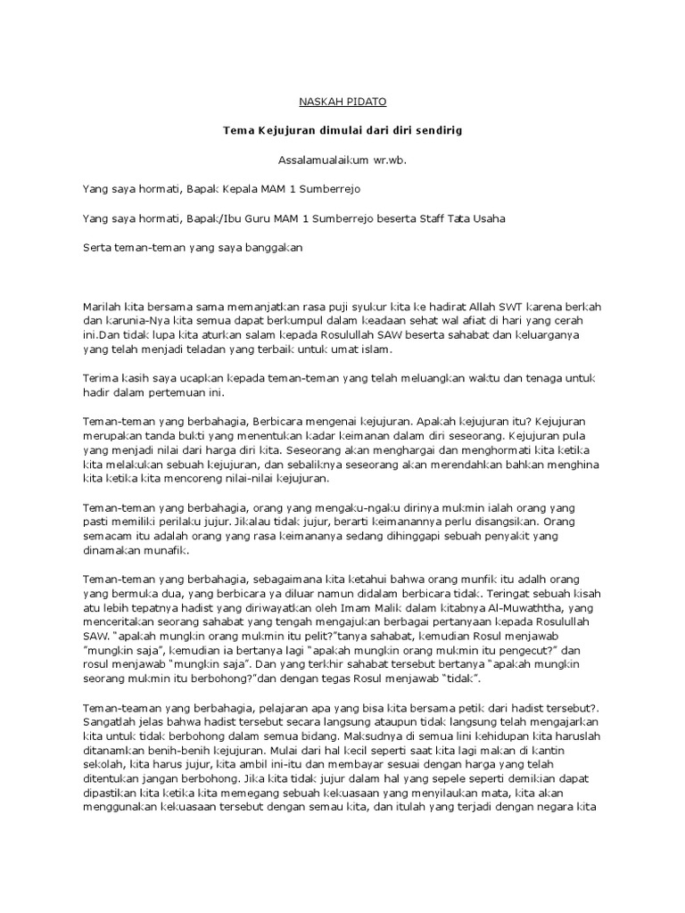Hari - Hari Indah: Contoh naskah pidato tema kejujuran