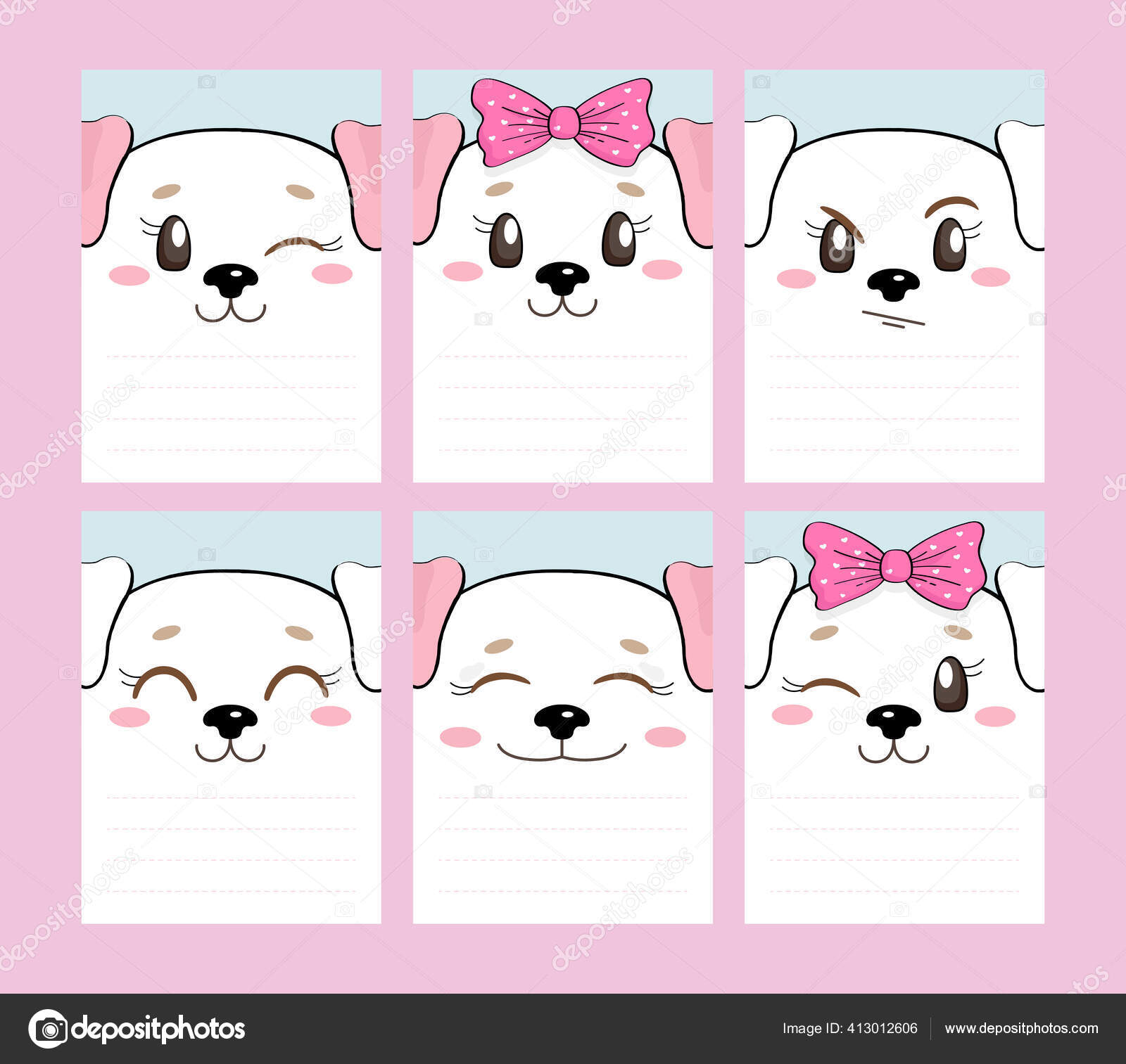Set Halaman Notebook Emoji Pidato Mencatat Templat Puppy Dan Anjing — Stok Vektor © werramka #413012606