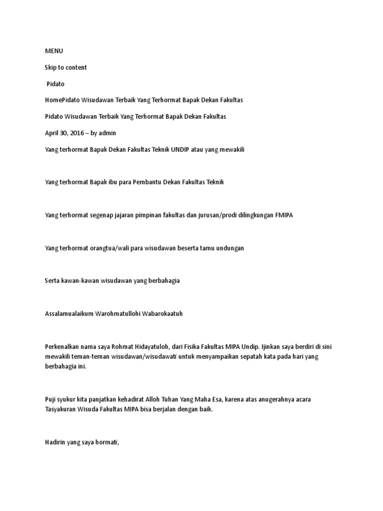 PDF) PIDATO PERWAKILAN WISUDAWAN PADA WISUDA VI IAIN SALATIGA | MK Ridwan - Academia.edu
