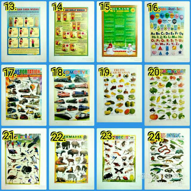 Jual poster gambar buah, sayuran, transportasi, huruf, angka …