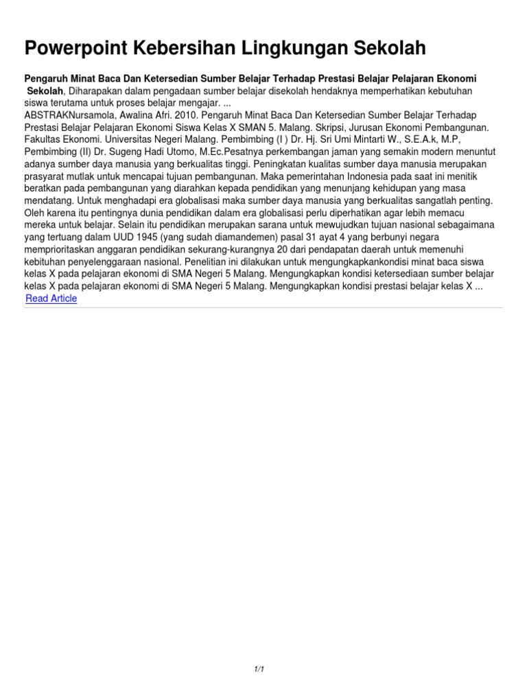 DOC) MAKALAH KEBERSIHAN LINGKUNGAN SEKOLAH | Sahrul Parawie - Academia.edu