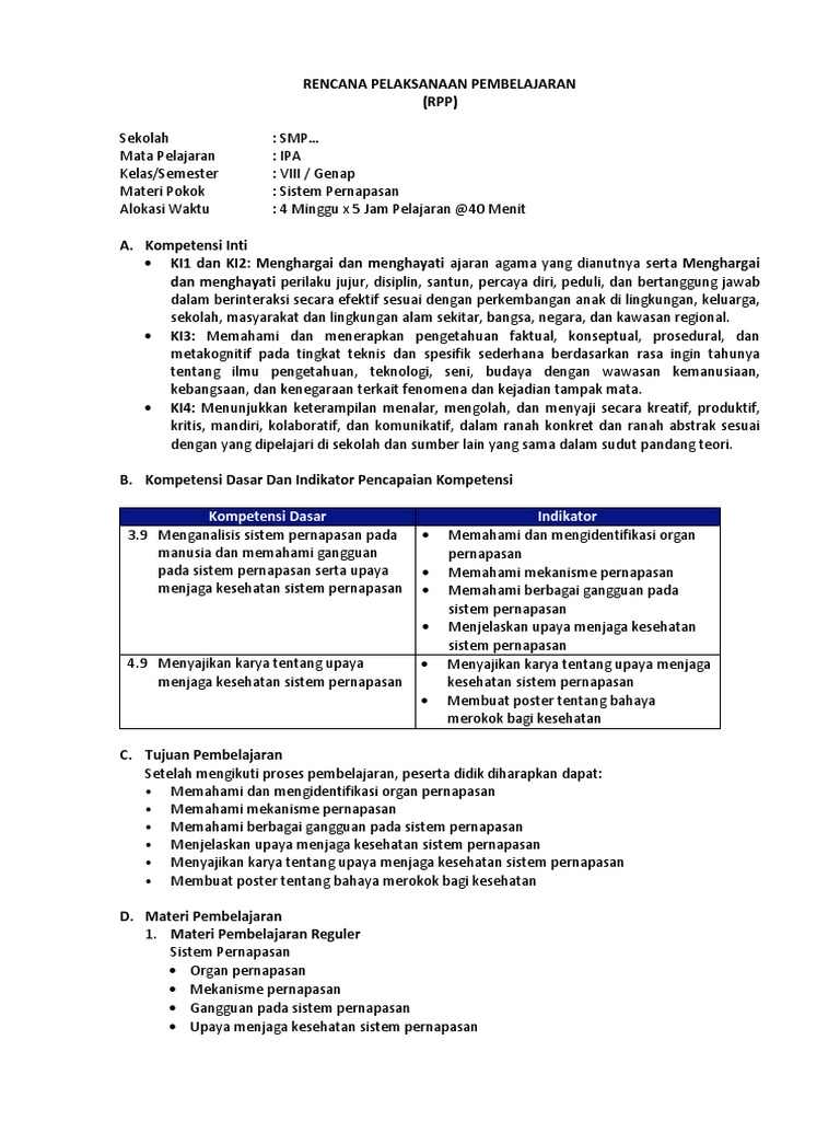 12. RPP 9.docx - RENCANA PELAKSANAAN PEMBELAJARAN(RPP Sekolah Mata Pelajaran Kelas/Semester Materi Pokok Alokasi Waktu SMP Negeri 3 Ketapang IPA VIII | Course Hero