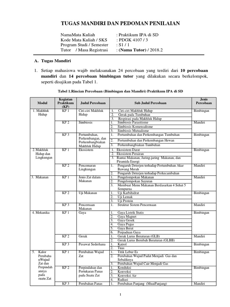 3. Tugas Mandiri & Pedoman Penilaian (PDGK 4107 - PRAKTIKUM IPA DI …