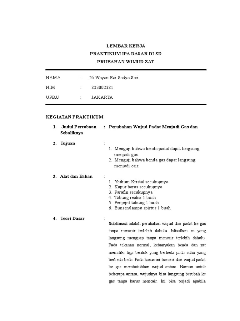 Lembar Kerja Praktikum Ipa Dasar Di Sd Prubahan Wujud Zat …