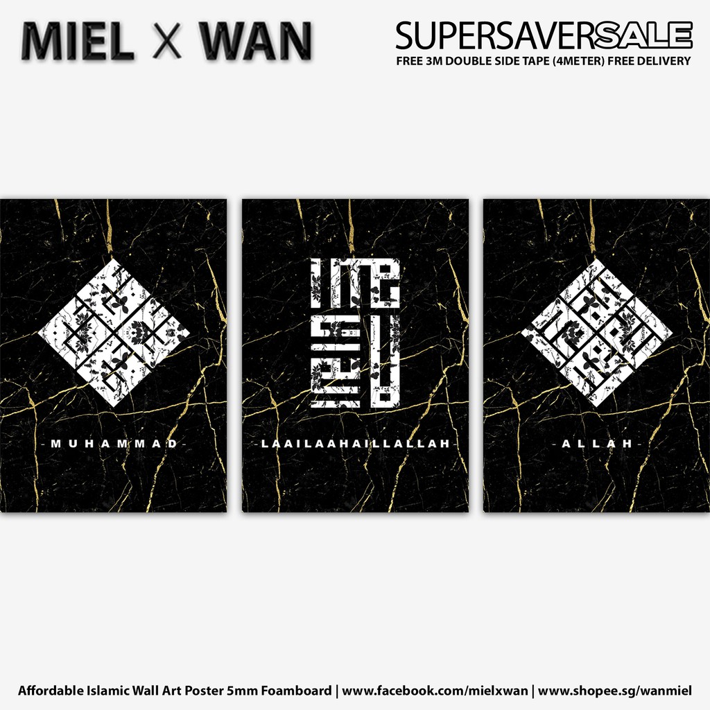 BLACK MARBLE ISLAMIC WALL ART A3 FOAM BOARD PRINT POSTER | Shopee Singapore