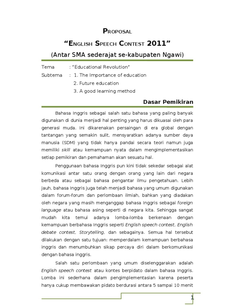 Contoh Proposal Dalam Bahasa Inggris - Guru Ilmu Sosial
