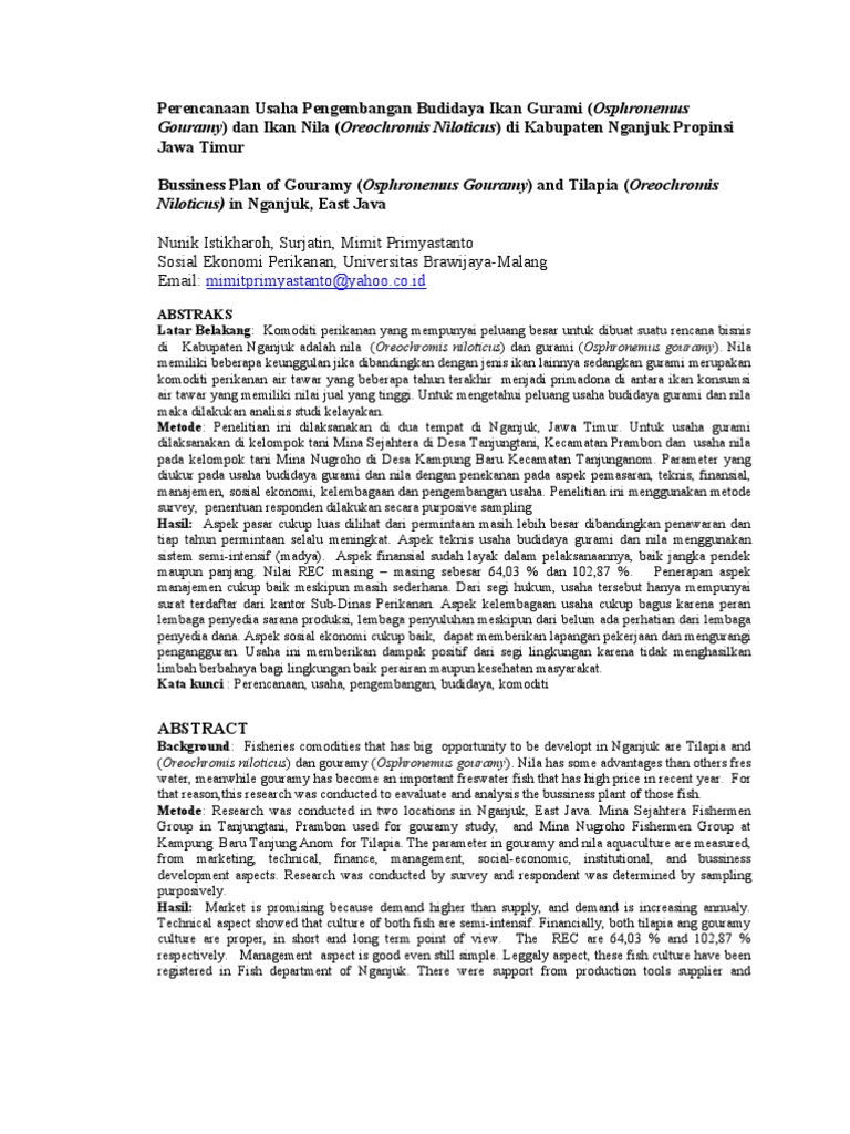 DOC) Peran Budidaya Ikan Gurame dalam Peningkatan Perekonomian Masyarakat di Kabupaten Tulungagung | David Bintama - Academia.edu