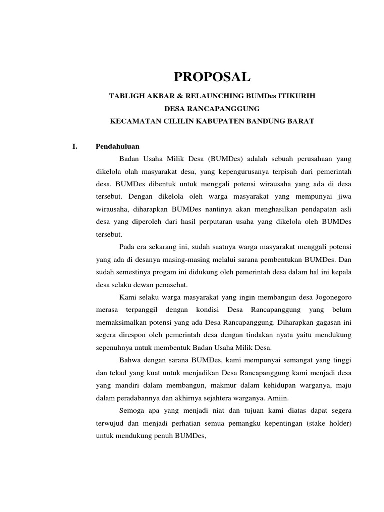 Contoh Proposal Penyertaan Modal BUMDes | Cipta Desa