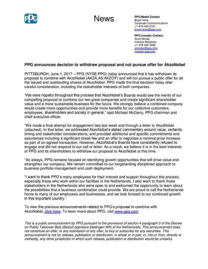 PPG geeft overnamestrijd om AkzoNobel voorlopig op | Foto | AD.nl