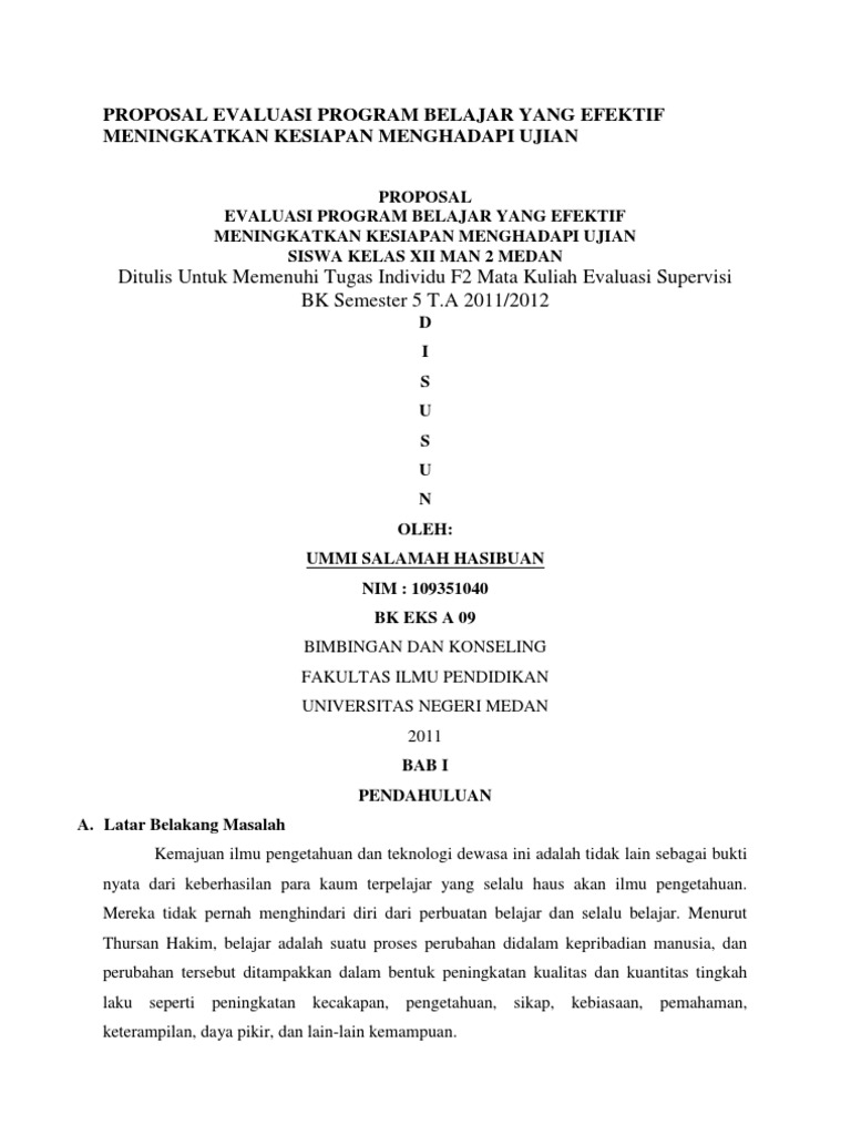 Proposal Evaluasi Program Belajar Yang Efektif Meningkatkan Kesiapan Menghadapi Ujian