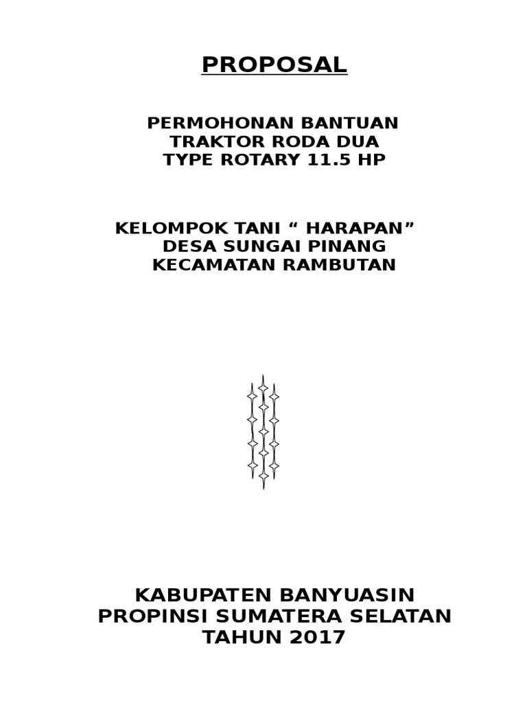 DOC) PROPOSAL PERMOHONAN BANTUAN MESIN BAJAK ( HAND TRACTOR ) OLEH : KELOMPOKTANI MATAHARI TERBIT KORONG KOTO PANJANG NAGARI ULAKAN KECAMATAN ULAKAN TAPAKIS KABUPATEN PADANG PARIAMAN TAHUN 2014 | Yamoo Chan - Academia.edu
