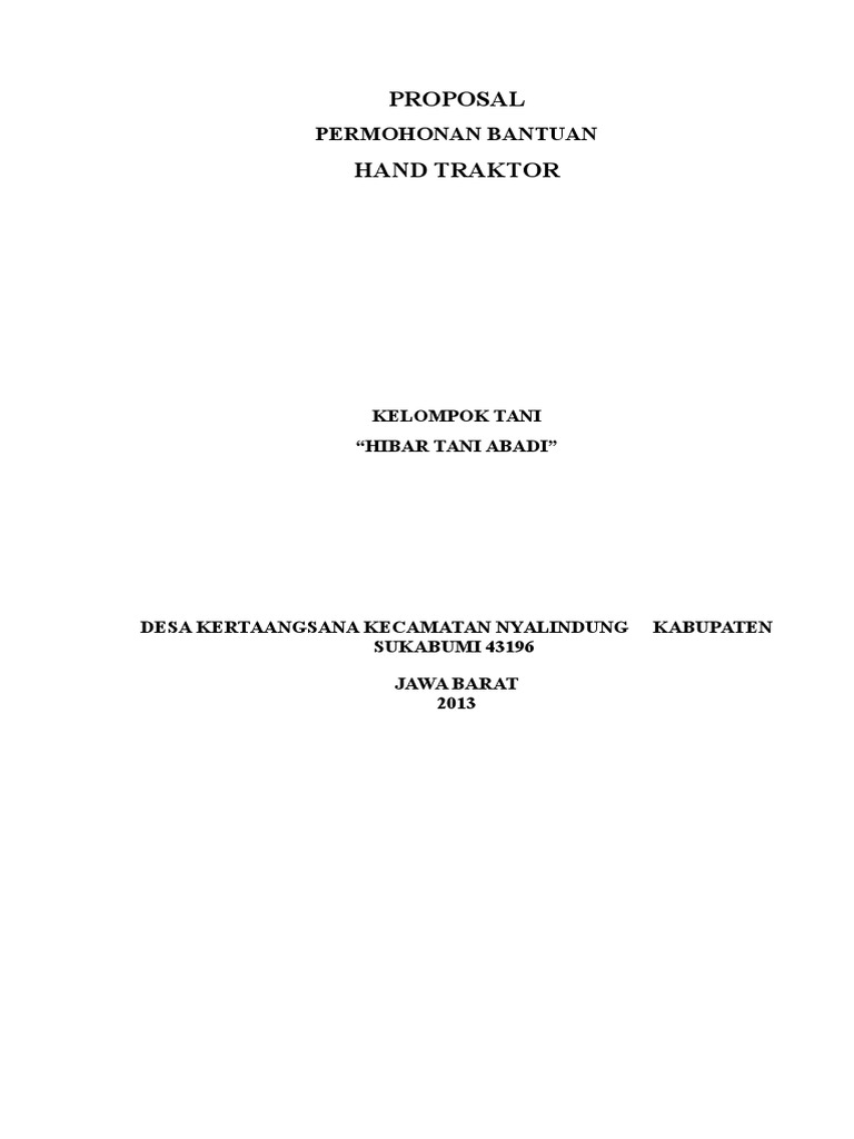 Contoh Proposal Bantuan Hand Traktor Kelompok Tani Pdf - Berbagi Contoh Proposal