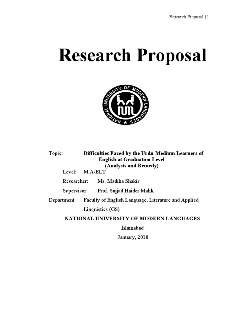 English Research Proposal Example | Topics and Well Written Essays - 1000 words