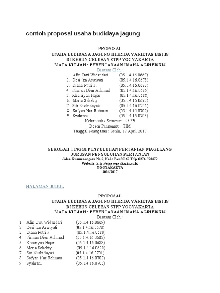 Paper Sekolah Tinggi Penyuluhan Pertanian Yogyakarta : contoh proposal usaha budidaya jagung