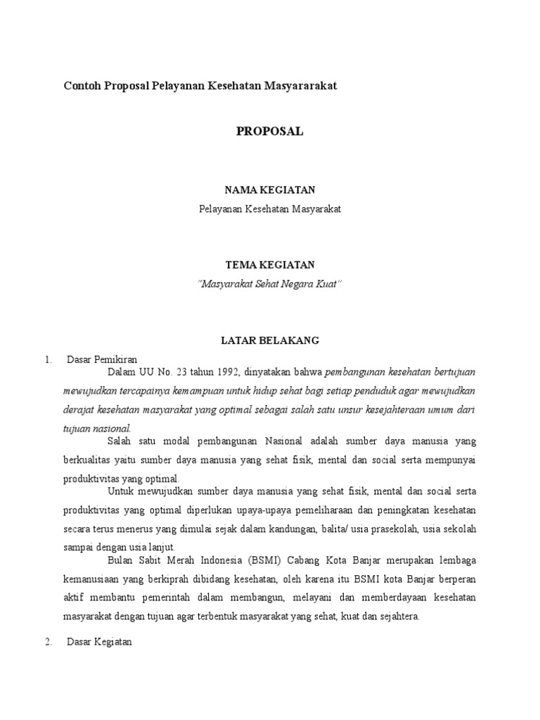 Contoh Proposal Pelayanan Kesehatan Masyararakat