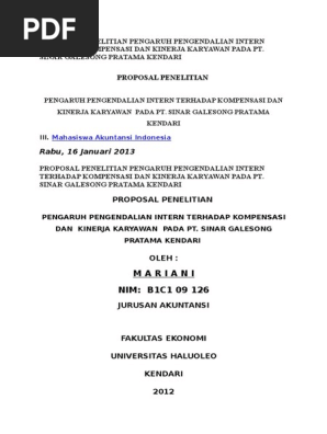 Proposal Penelitian Pengaruh Pengendalian Intern Terhadap Kompensasi Dan Kinerja Karyawan Pada Pt