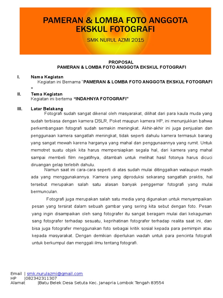 Proposal Pameran Dan Lomba Foto Anggota