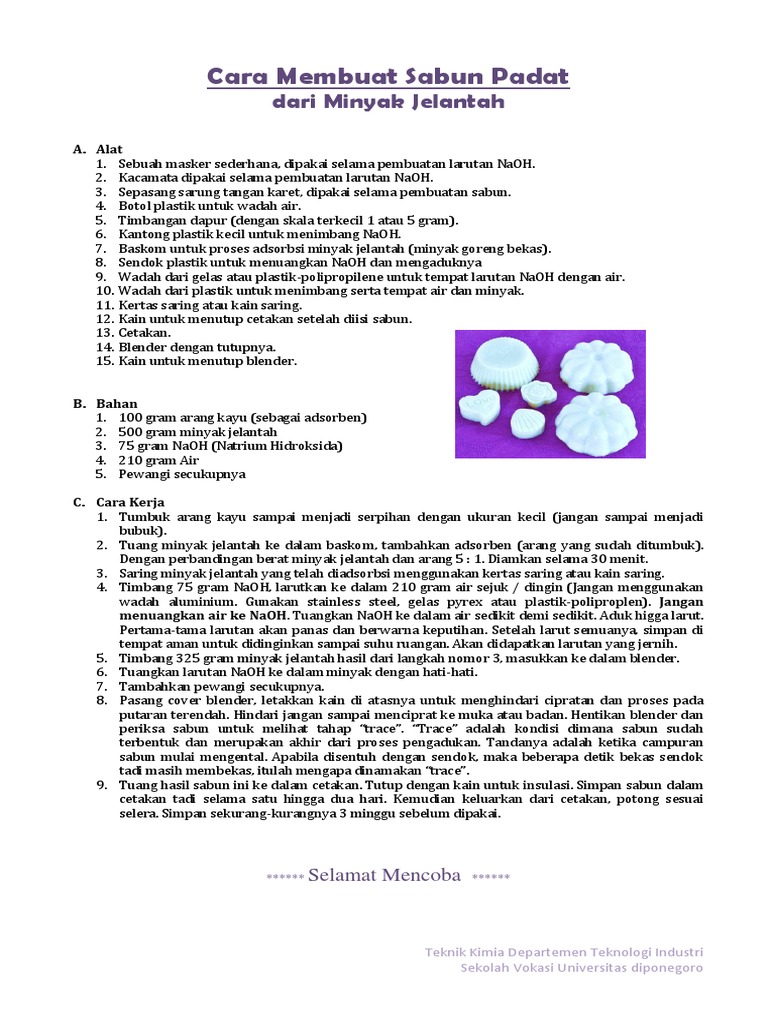 DOC) BUAT SABUN DARI MINYAK JELANTAH | Gunawan Eko Airenation - Academia.edu