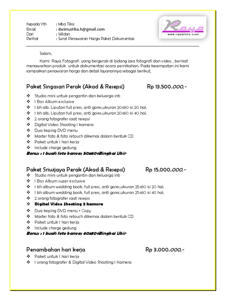 Contoh Surat Penawaran Harga Jasa Fotografi - Kumpulan Surat Penting