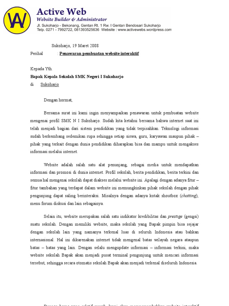 Contoh Surat Penawaran Jasa Pembuatan Website dan Toko Online | Surat, Website, Gagasan