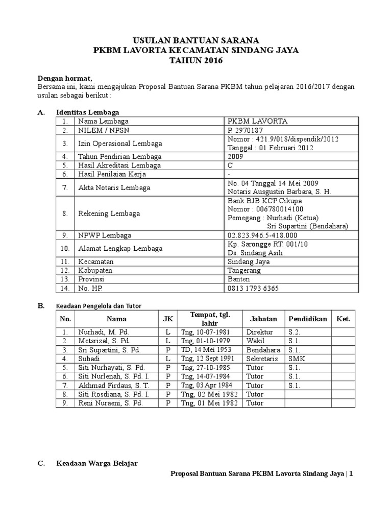 DOC) Pengajuan Proposal PKBM Terbaru.docx | Marthen Atanay - Academia.edu