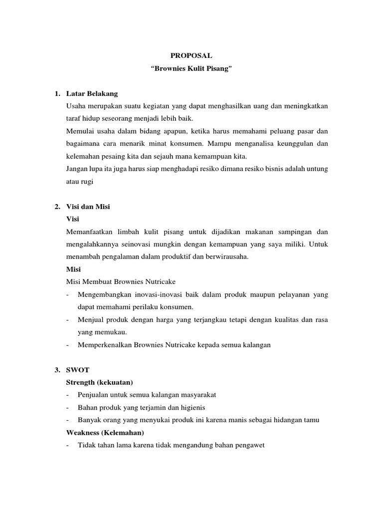 PROPOSAL BISNIS USAHA KUE BROWNIES COKLAT - PDF Free Download